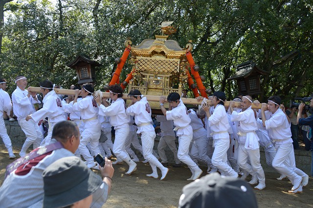 10月13日 御神輿の御神幸が行われました。今年は東回りですので、御旅所祭は唐琴にて行われます。