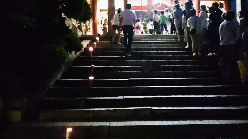夏越大祓祭 更新日:2021年6月24日 公開日:2016年7月16日 行事 平成28年7月15日(金)、夏越大祓祭(輪くぐり)が行われました。例年よりも涼しい夏祭りとなりました。 午後7時、氏子青年会により茅の輪が取り付けられます。 すでに参道は、輪の取り付けを待つ参拝者で長蛇の列です。 名物となった氏青の射的は、開始と同時にすごい賑わい。大人も子どもも真剣な眼差しで景品を狙います。 これまた名物となりつつあるラムネ販売。そして、今年はポップコーンを販売しました。香ばしい匂いが漂います。 今年も倉敷琴浦高等支援学校の生徒と作った竹灯籠が、参道を照らします。 タグ 夏越大祓祭 竹灯籠 輪くぐり 関連記事 神宮献米事業 御田植祭第2回奉納尻相撲大会秋季例大祭(御神幸)鴻の宮氏子青年会平成29年度総会大晦日、元旦行事神宮新穀献米事業御田植祭 投稿ナビゲーション 第五回奉納尻相撲大会神宮新穀献米事業