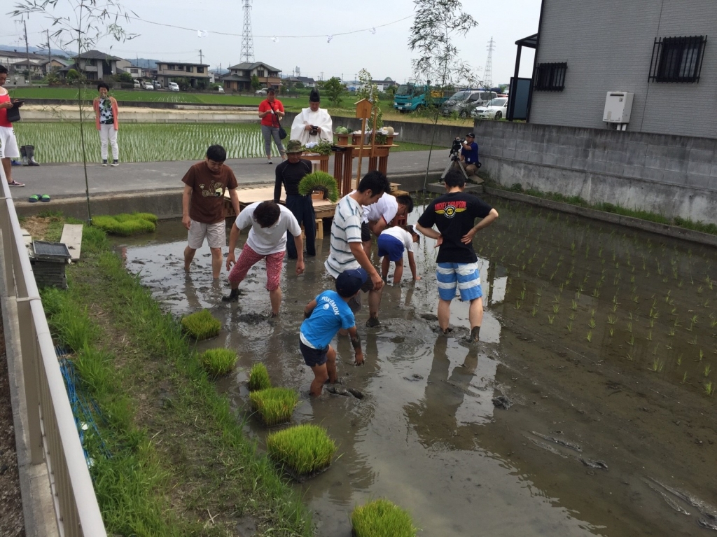 いよいよ田植です。氏子の子供たちも一緒に頑張りましょう!
