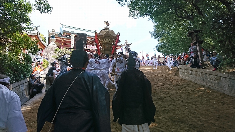 ついに随神門が見えてきました。お神輿の帰還により平成三十年の御神幸は無事終了しました。