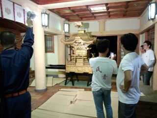 お神輿蔵出し 更新日:2021年6月24日 公開日:2012年10月5日 行事秋祭り 10月4日、氏子青年会によりお神輿の蔵出しが行われました。神輿蔵から拝殿に移されたお神輿は、秋祭り当日に御神体をお乗せするためにさまざまな準備をします。 続きを読む