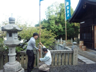 秋祭り準備 更新日:2021年6月24日 公開日:2012年10月11日 行事秋祭り 10月11日 例大祭の準備を行いました。 氏子青年会は主に幟(のぼり)の設置、地元婦人会及び敬神婦人会の境内清掃の手伝いを行いました。 この頃から琴浦の町全体がお祭りムードです。 続きを読む
